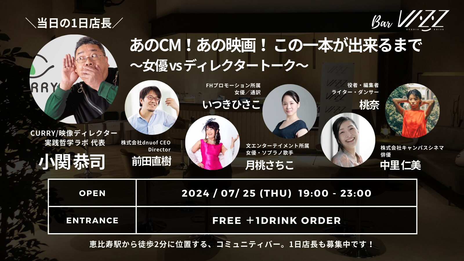 【7月25日(木)】Bar VIZZ あのCM!あの映画! この一本が出来るまで 〜女優VSディレクタートーク〜