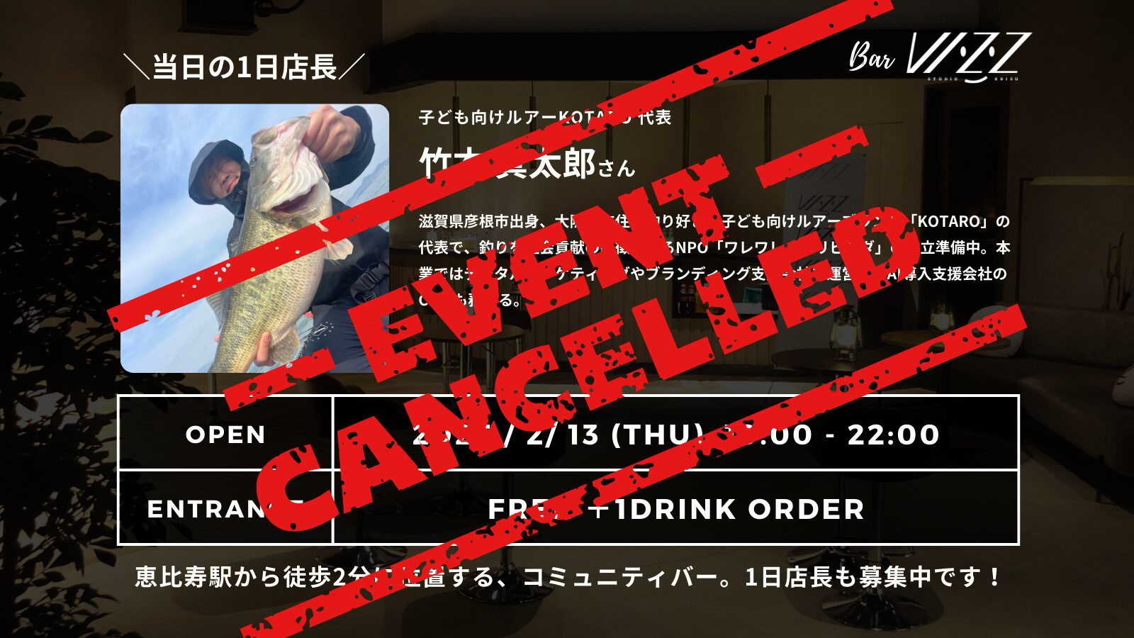 ご来場のご予定をされていたゲストの皆様にはご迷惑をおかけいたします。