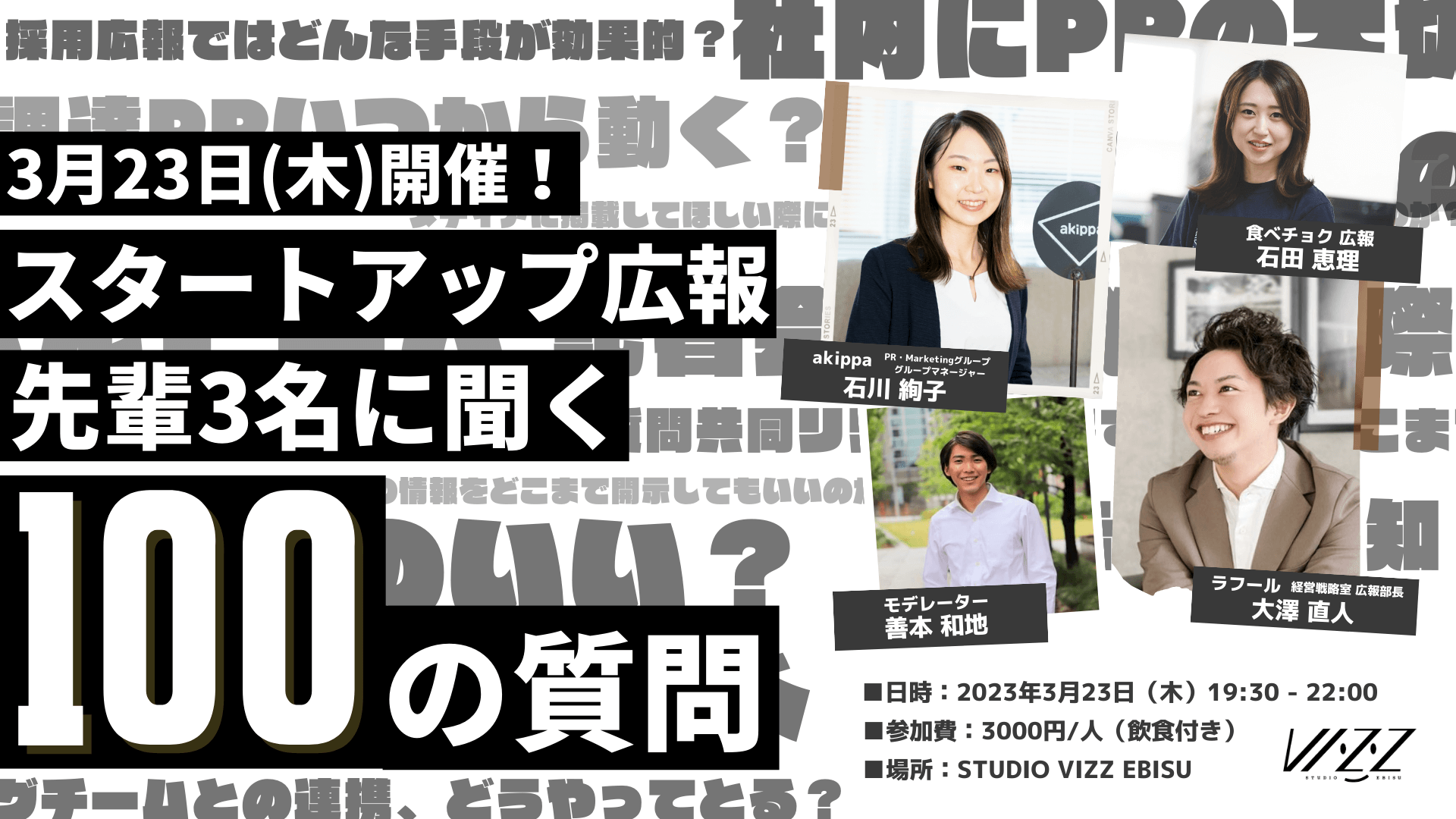 スタートアップの先輩広報3名に聞く「100の質問」~実務で役立つ広報勉強会~ presented by STUDIO VIZZ EBISU