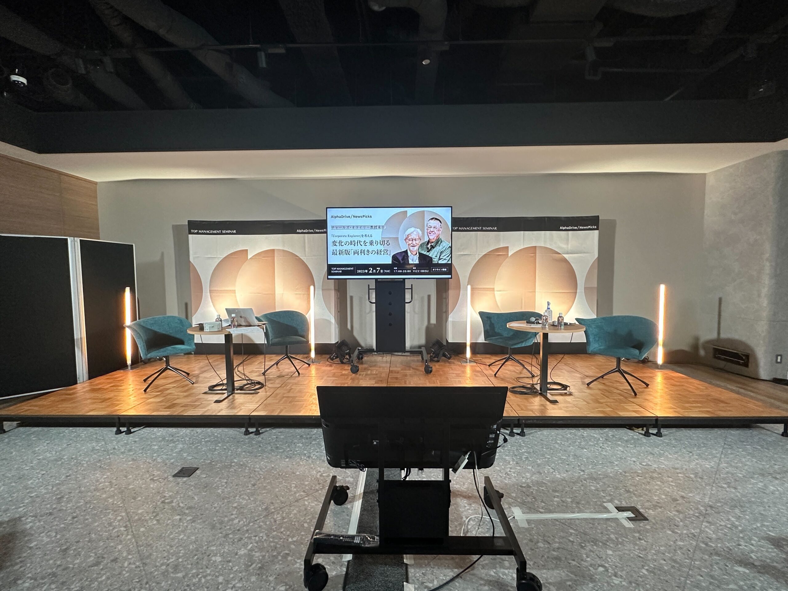 使用備品:椅子、マイク、スピーカー、スクリーン、ソファ、配信機材等