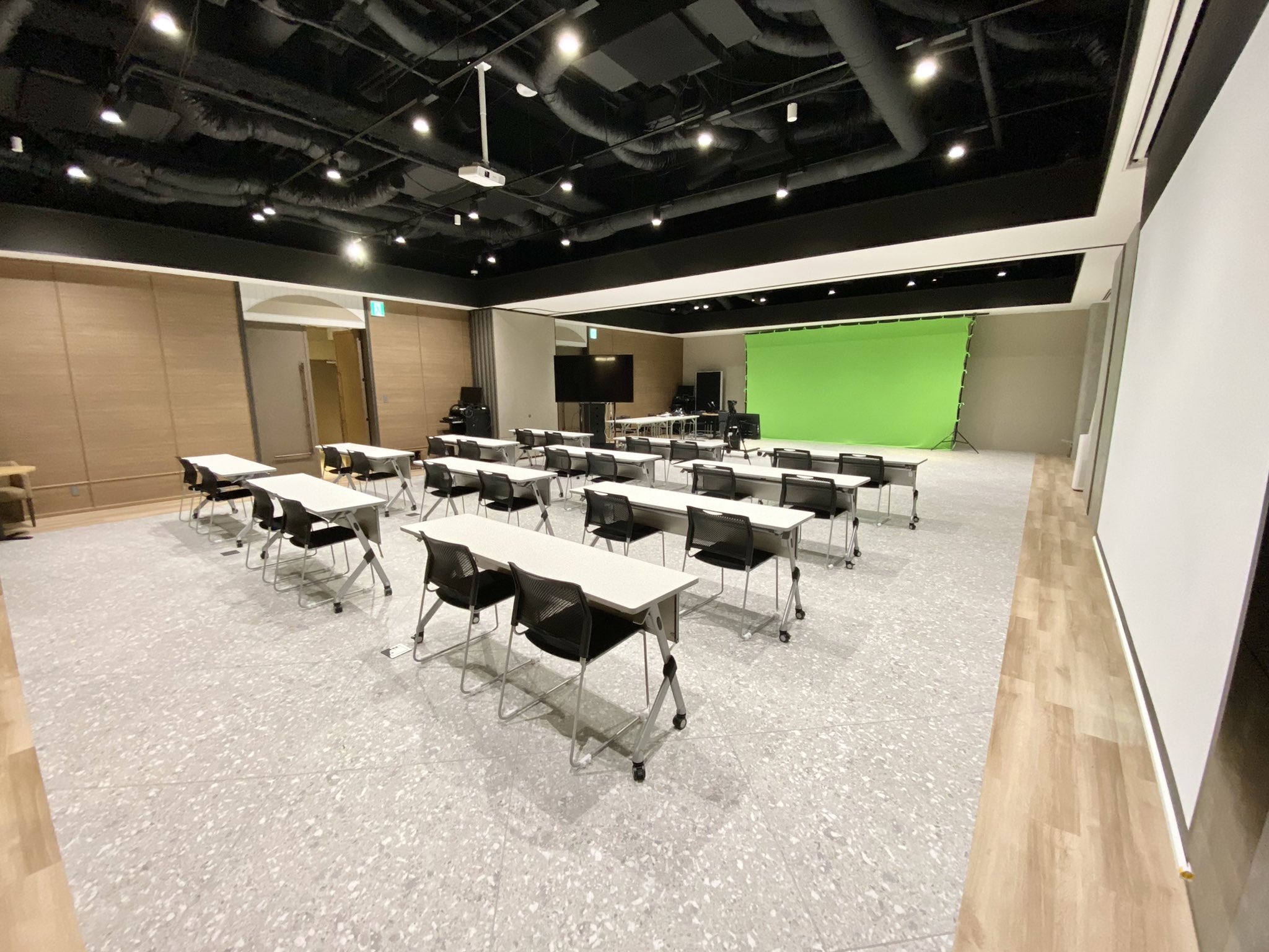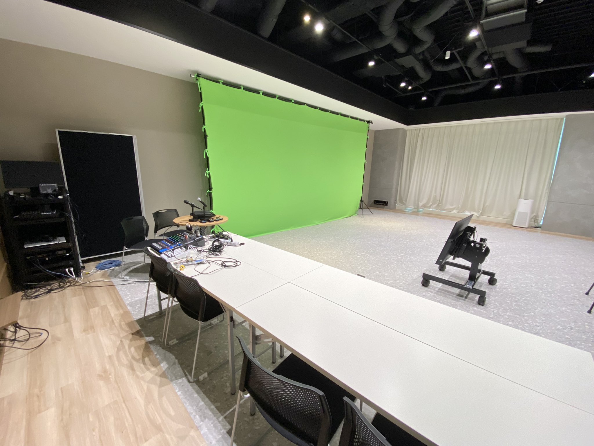使用備品:椅子、マイク、スピーカー、スクリーン、グリーンバッグ、配信機材等
