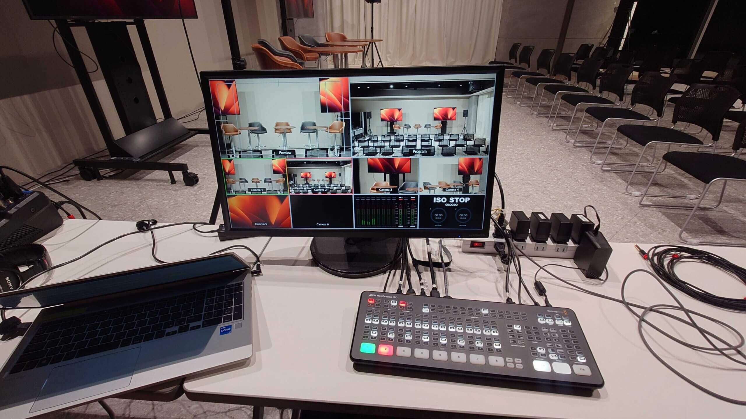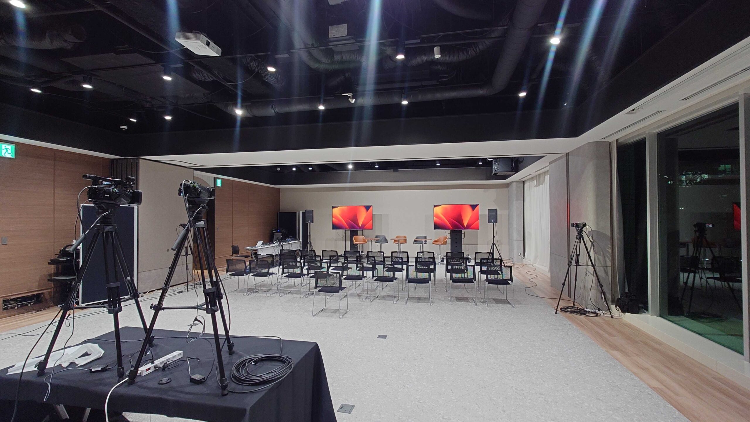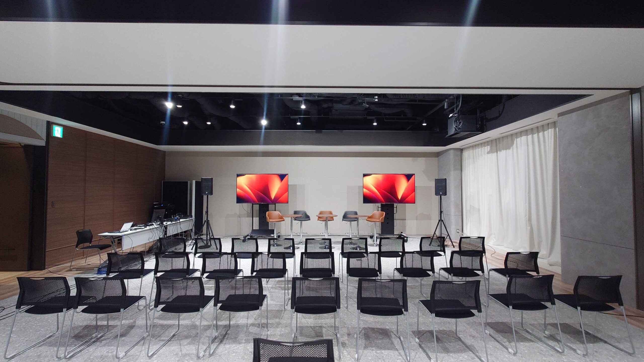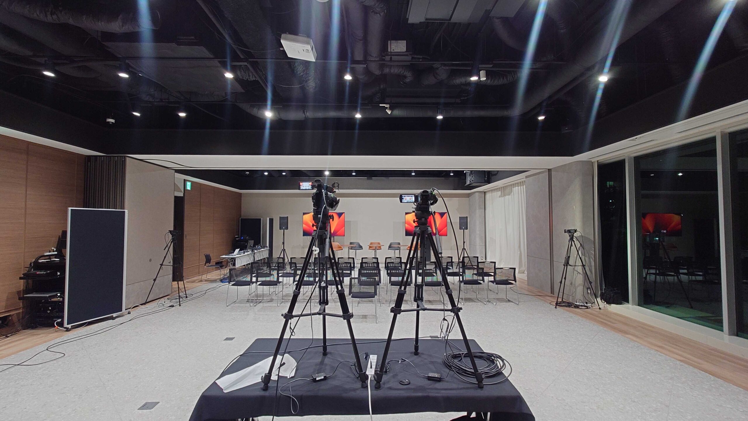 使用機材:ハイチェア、配信機材、大型モニター、大型スピーカー、スタッキングチェア等